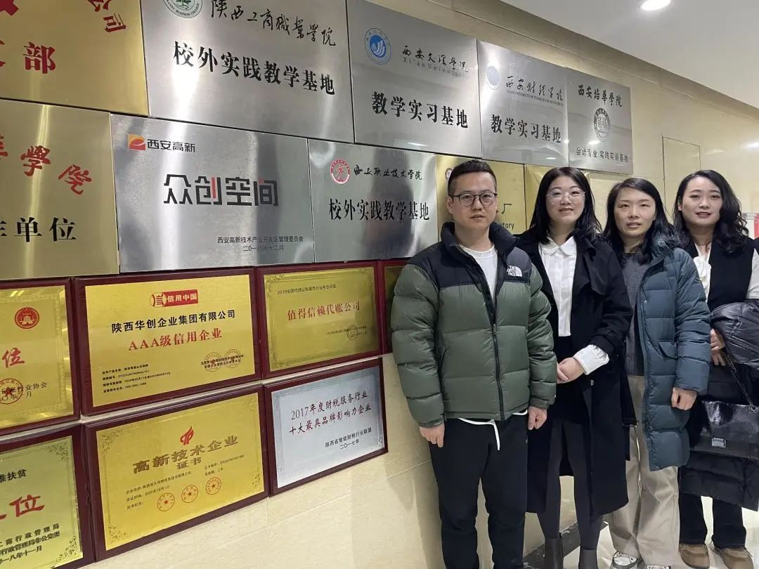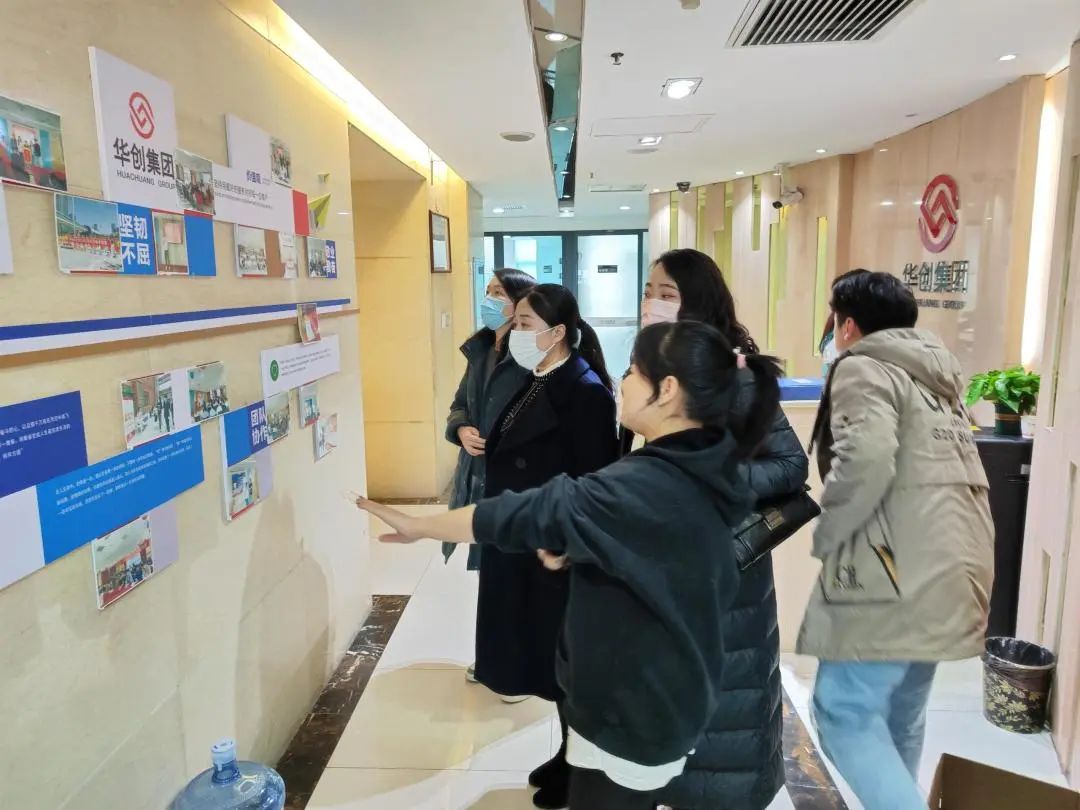 陕西华创企业集团有限公司总经理付攀、人事部王英维经理介绍了企业蓬勃发展现状,并带领走访教师队伍参观回忆了华创集团与我校合作共建会计专业实践实训基地的历史。