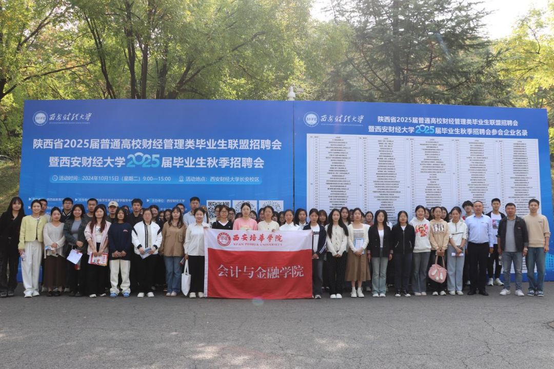 会计与金融学院按照学校招生与就业指导中心关于完善24届就业信息,夯实25届就业工作推进的相关文件要求,积极组织我院学生参与此次财经类专场招聘会,经过辅导员动员,学生自愿报名,共参与此次招聘学生达到170余人次,2024年10月15日8点50分,我院师生在党委书记兼行政副院长刘斌和党委副书记高乐的带领下,准时前往西安财经大学,参与本次招聘会。
