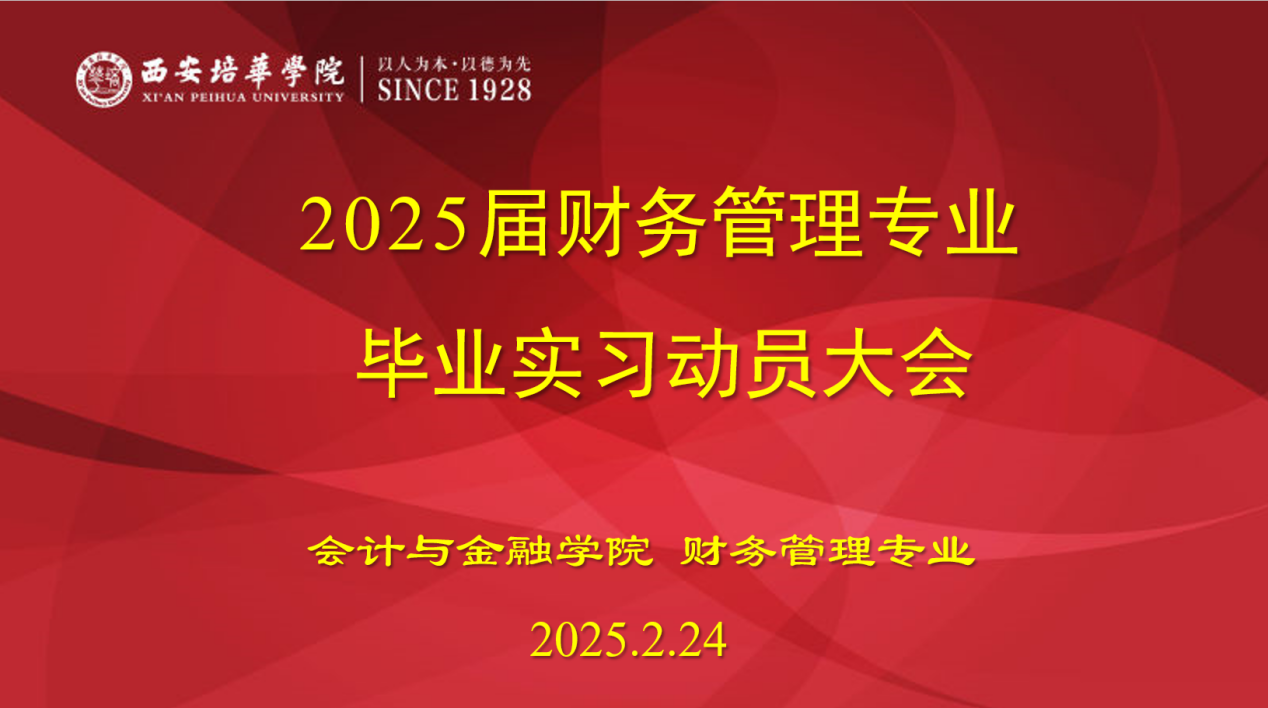 毕业实习是高等教育教学计划的重要组成部分,是人才培养的重要环节,是对大学生所学专业知识和专业技能的巩固检验,是培养学生分析解决问题能力、提高学生实践动手能力及创新创业能力的重要方式。为保证我院2025届毕业生毕业实习工作正常有序开展,根据西安培华学院教务管理中心《关于做好2025届大学生毕业实习工作的通知》(培华教函〔2024〕163号)文件要求,会计与金融学院财务管理专业于2025年2月24日19:00召开2025届毕业实习动员大会,本次会议通过腾讯会议举行,管理系主任李永红、系副主任田琳、实习指导教师以及2025届全体毕业生参加了本次会议。