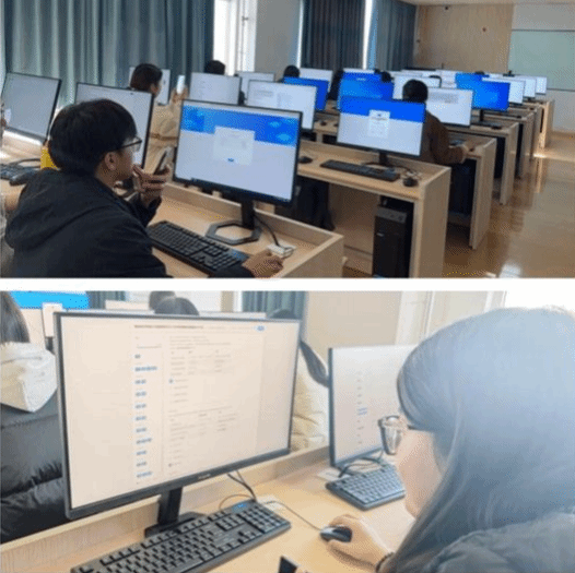 在教学副院长兼ACBSP专业认证工作执行委员会主任孟君、专业认证办公室主任陈青、会计与金融学院党委副书记高乐、实验员葛文隽、张朝梅、姬帅帅、教学科研干事蔡翊、辅导员刘经纬、寇方译、孙宝丽、赵娅囡、赵琦、郭若钶、张超、罗兰、乔安等教师的共同努力下,从考场布置、技术支持到监考安排均精心部署。测试于格物楼实训机房设共13个考场,使用标准化计算机考试系统进行作答。考试期间,各监考教师严格履行职责,全程维持秩序,认真核对学生信息,耐心指导登录操作,保障考试的公平、公正与顺畅实施。