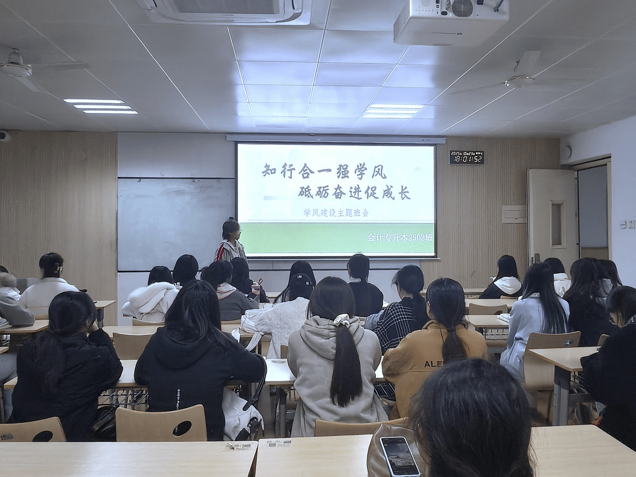此次覆盖全院、深入研讨的主题班会活动,不仅统一了思想认识,更凝聚了集体力量,标志着学院学风建设工作真正下沉到班级、落实到个人。下一步,会计与金融学院将持续以班风建设为抓手,不断完善学风建设长效机制,推动形成常态化、制度化的育人氛围,助力广大学子在良好的学习环境中砥砺前行,携手共赴美好前程。