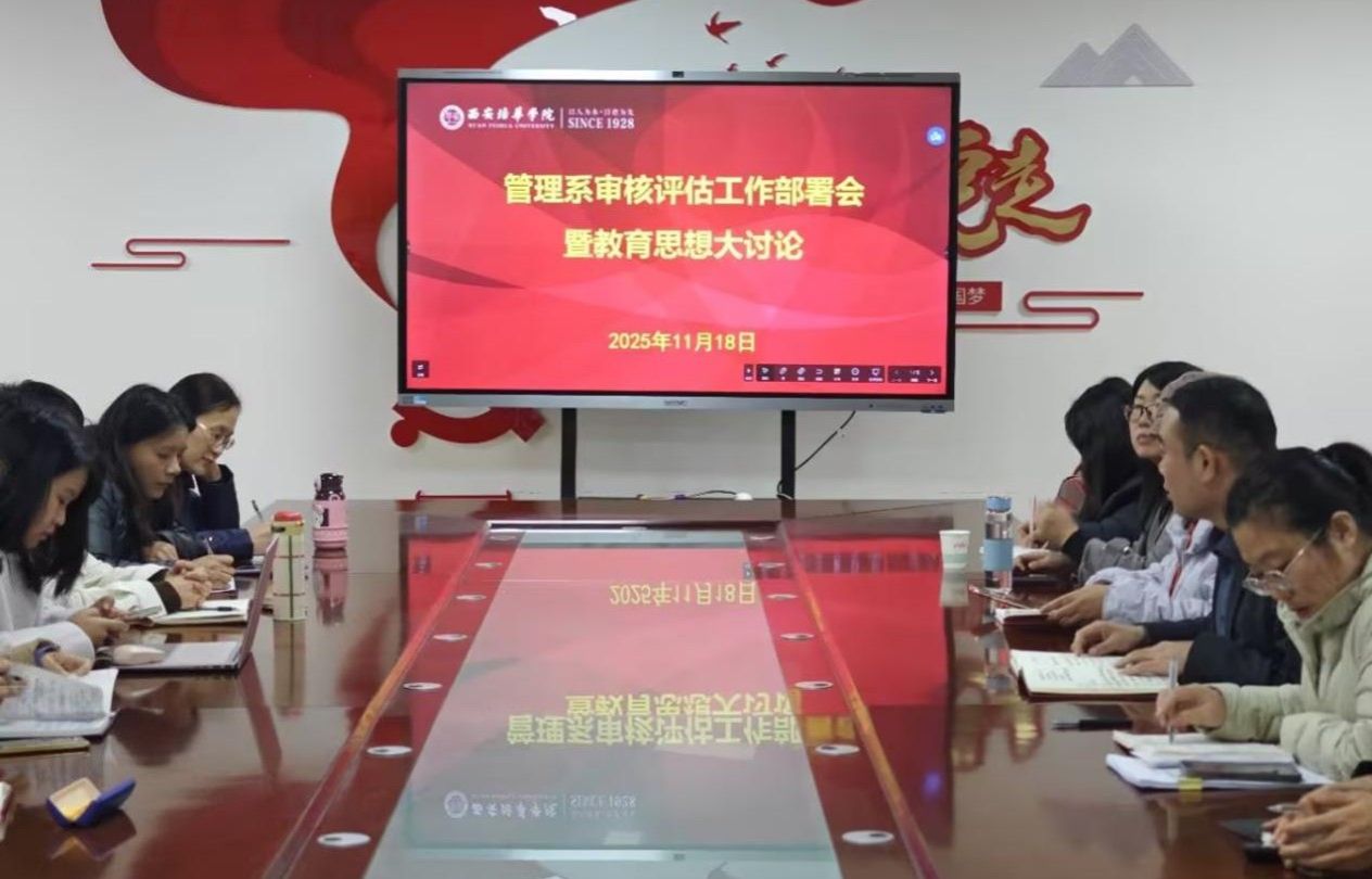 为深入贯彻落实学校教育教学审核评估工作部署,推动教育思想大讨论走深走实,西安培华学院会计与金融学院管理系于2025年11月18日星期二在2115会议室召开“管理系教育思想大讨论暨审核评估工作部署会”。会计与金融学院党委书记兼行政副院长刘斌、管理系主任李永红、副主任田琳及全体管理系教师参加会议,围绕审核评估迎检准备、教育思想大讨论成果转化、师德师风建设等内容展开深入研讨与部署。