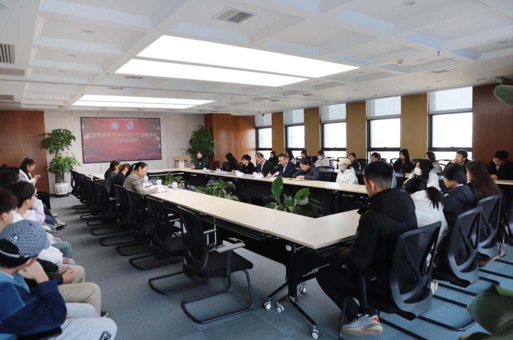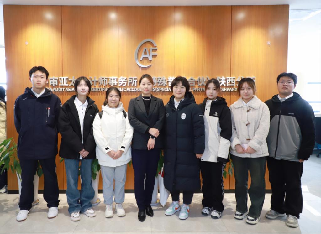 为进一步贯彻我校“产教融合、校企合作”的办学模式,提高会计新生专业认知水平,帮助学生明确专业学习目标和职业发展方向,2023年12月8日下午,我院党委书记史立军、党委副书记刘斌、会计学专业教师邢淑兰、CPA职业导师李虹、辅导员老师杨婷婷共同带领2023级会计学卓越1班全体学生赴中审亚太会计师事务所陕西分所参观交流。中审亚太会计师事务所陕西分所人力资源部总监李俊梅、人资专员董静宜、中审亚太陕西分所总审核师杨红丽一同参加。