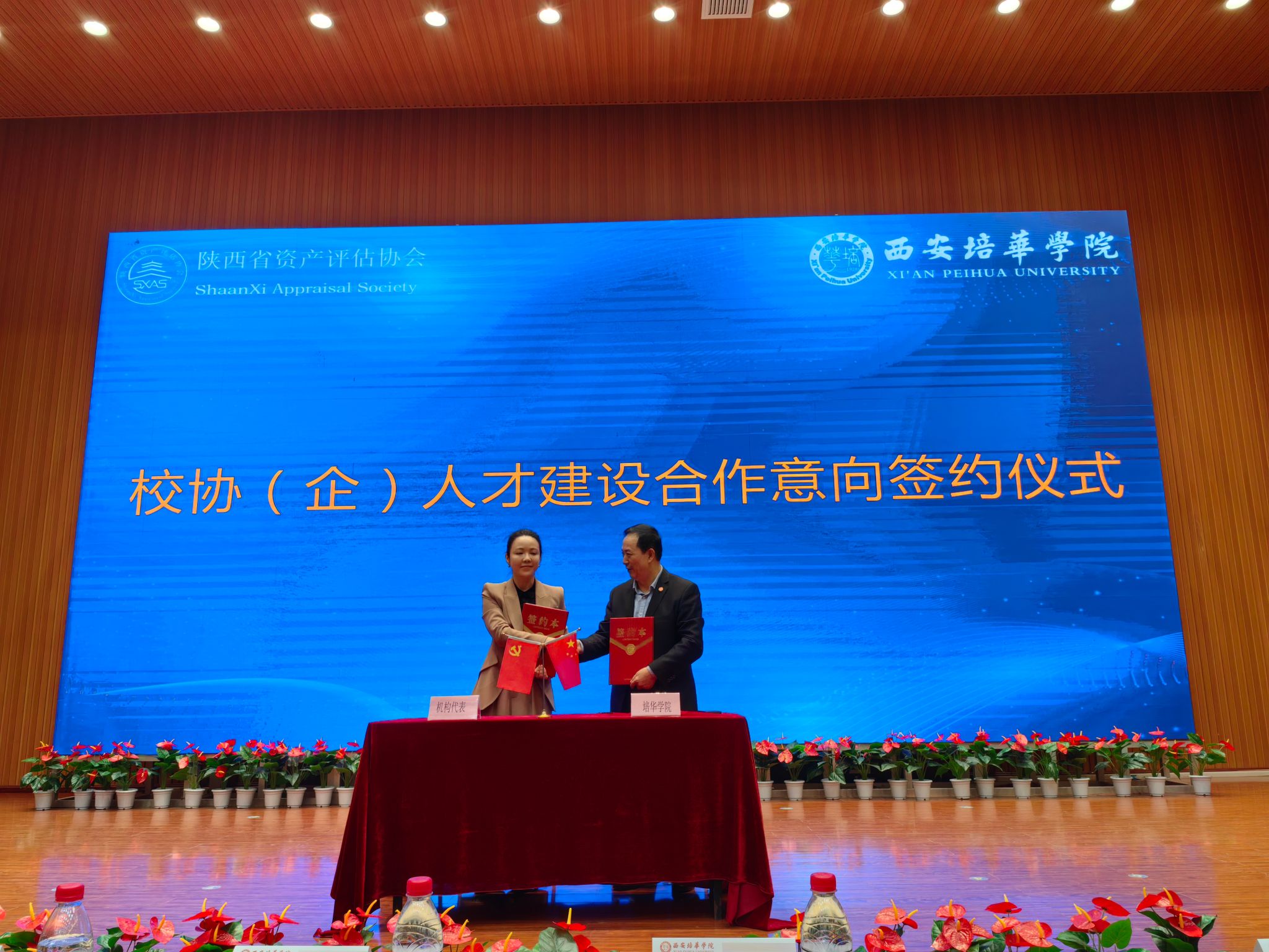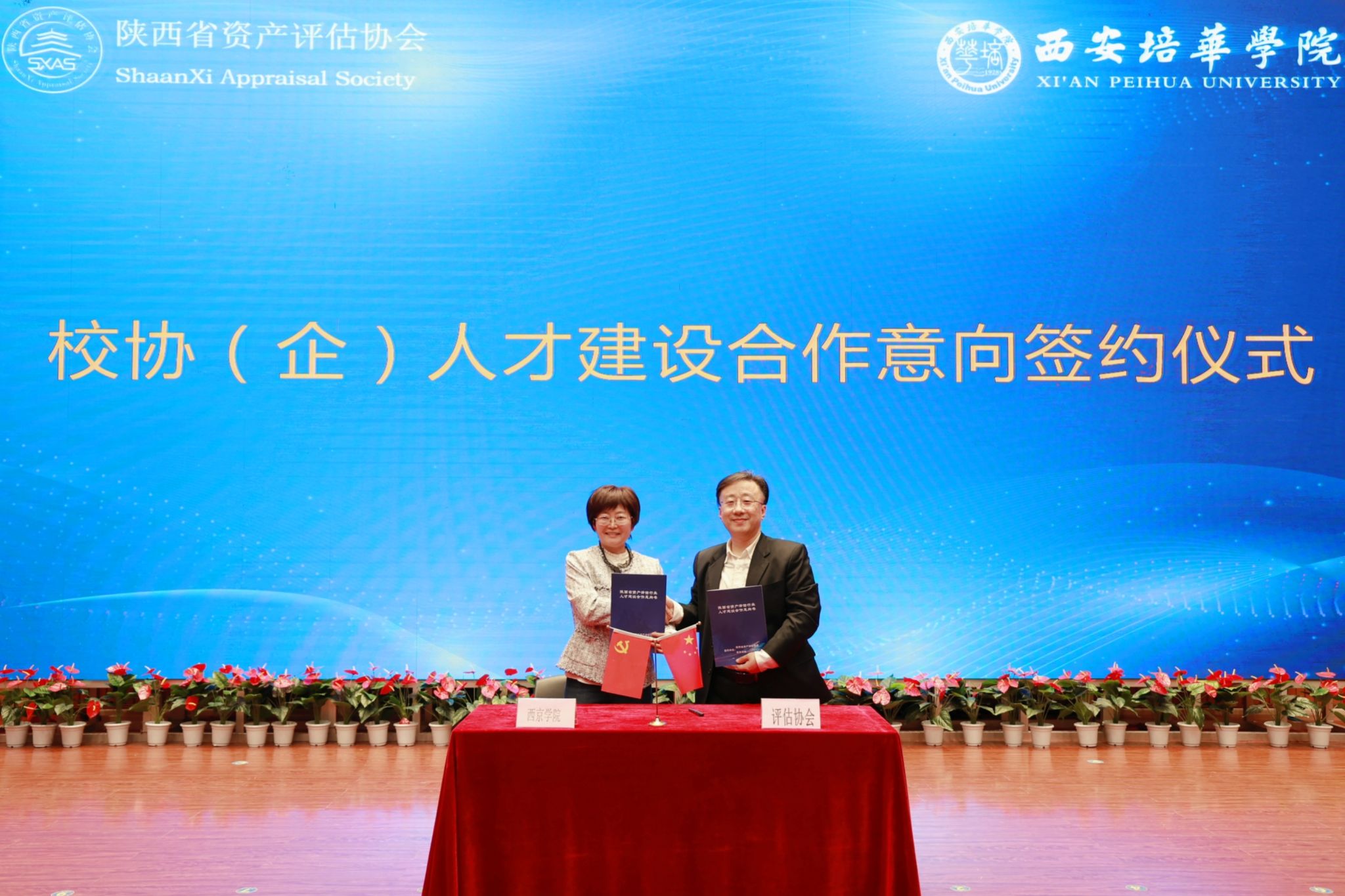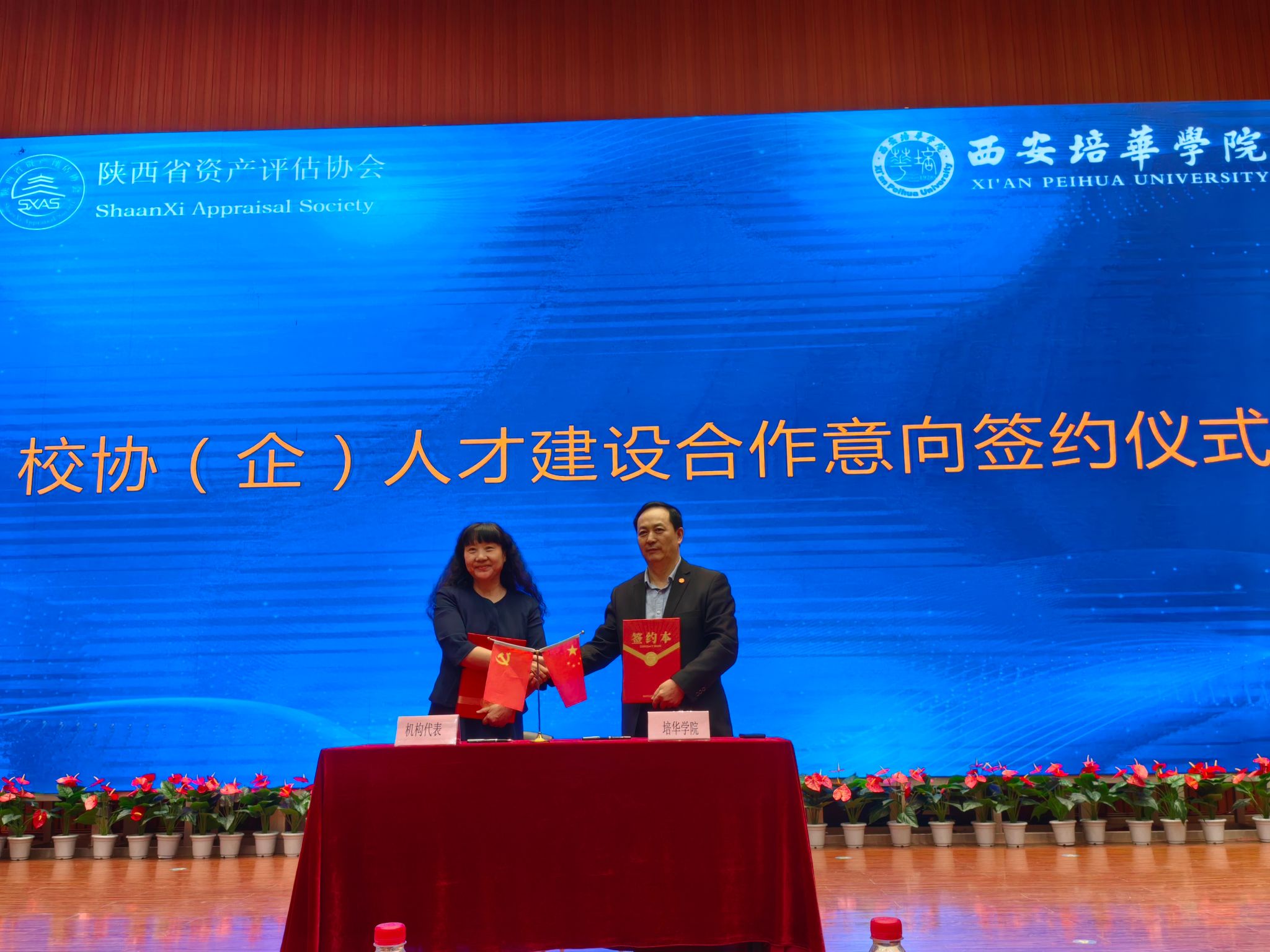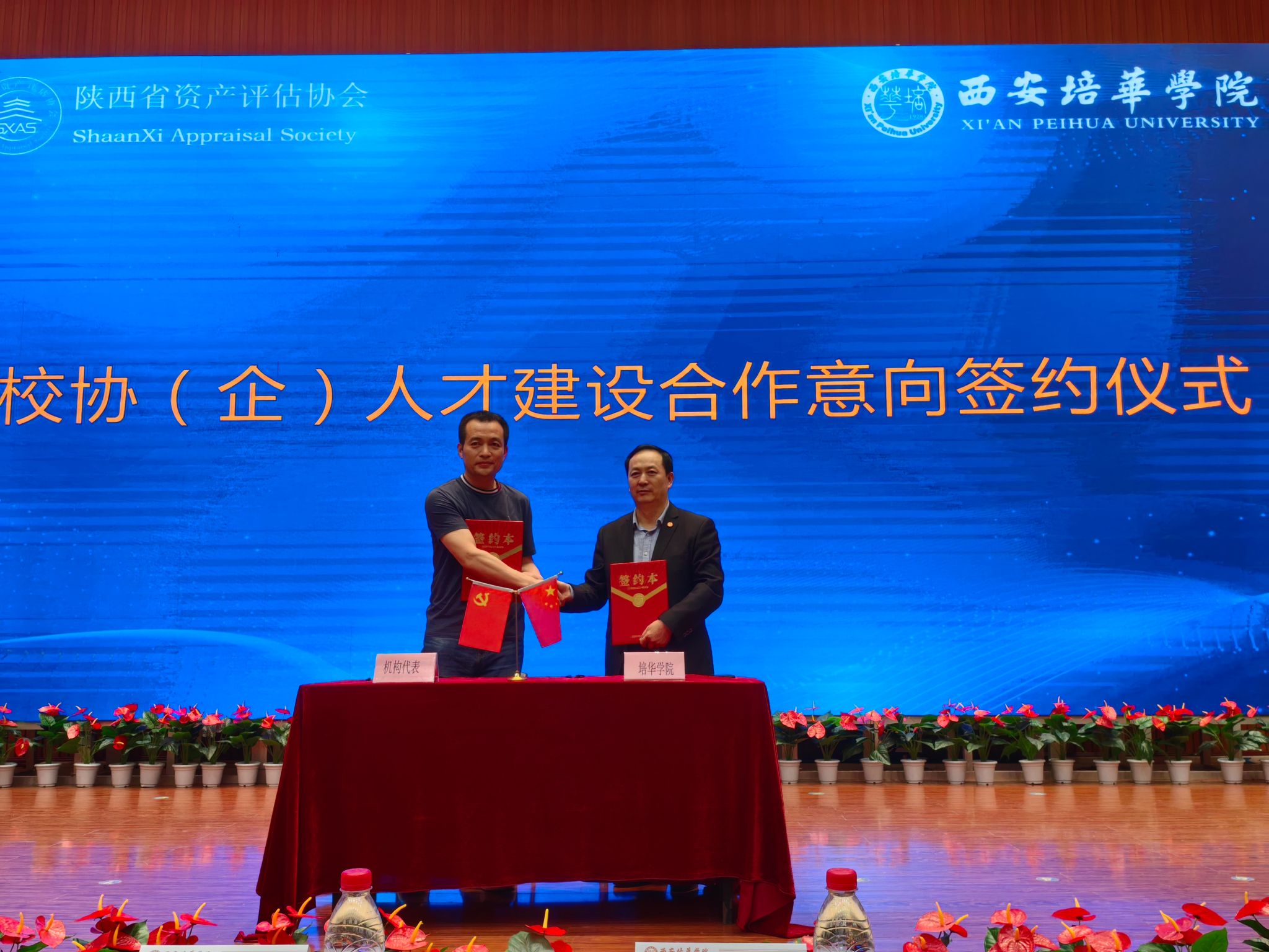 随后陕西省资产评估协会分别与西安培华学院、陕西财经大学行知学院、西京学院签订了人才建设合作意向书;西安培华学院与正衡、新兰特、天健兴业、中和、金达、卓信大华、同道、旭隆、信通、天任十家资产评估公司签订了资产评估新专业人才联培协议。