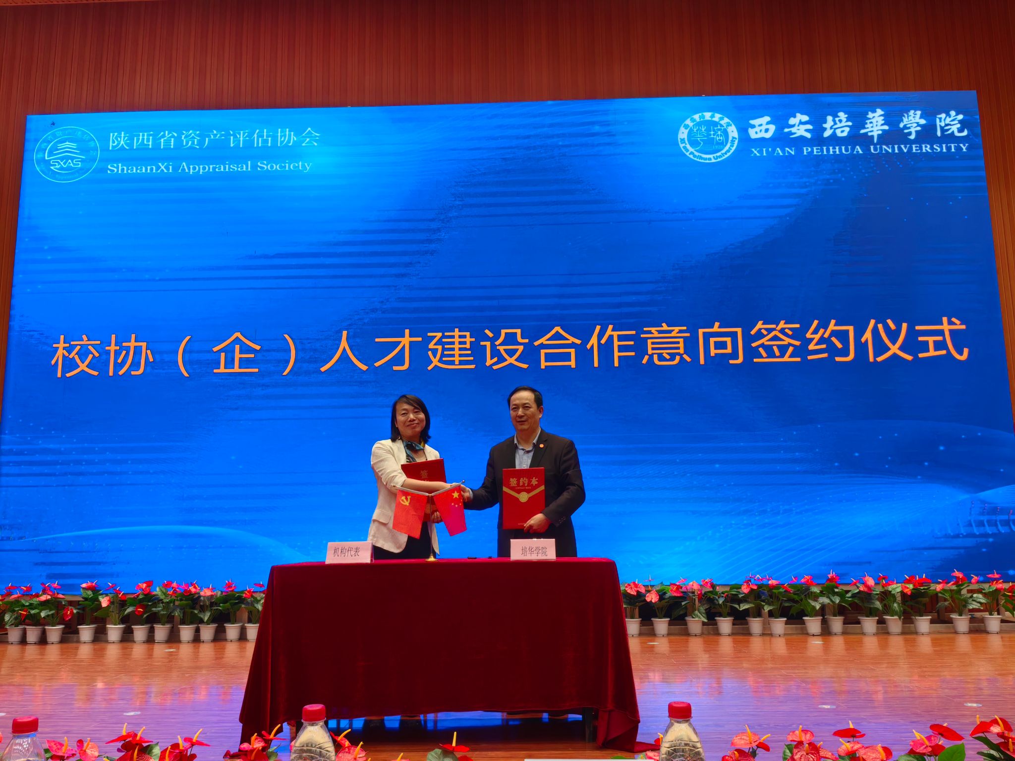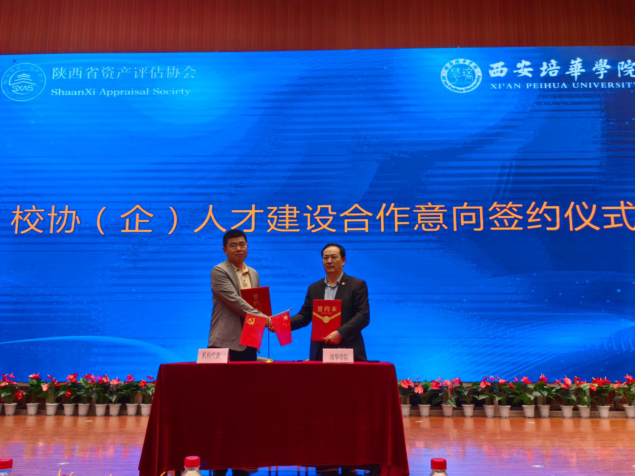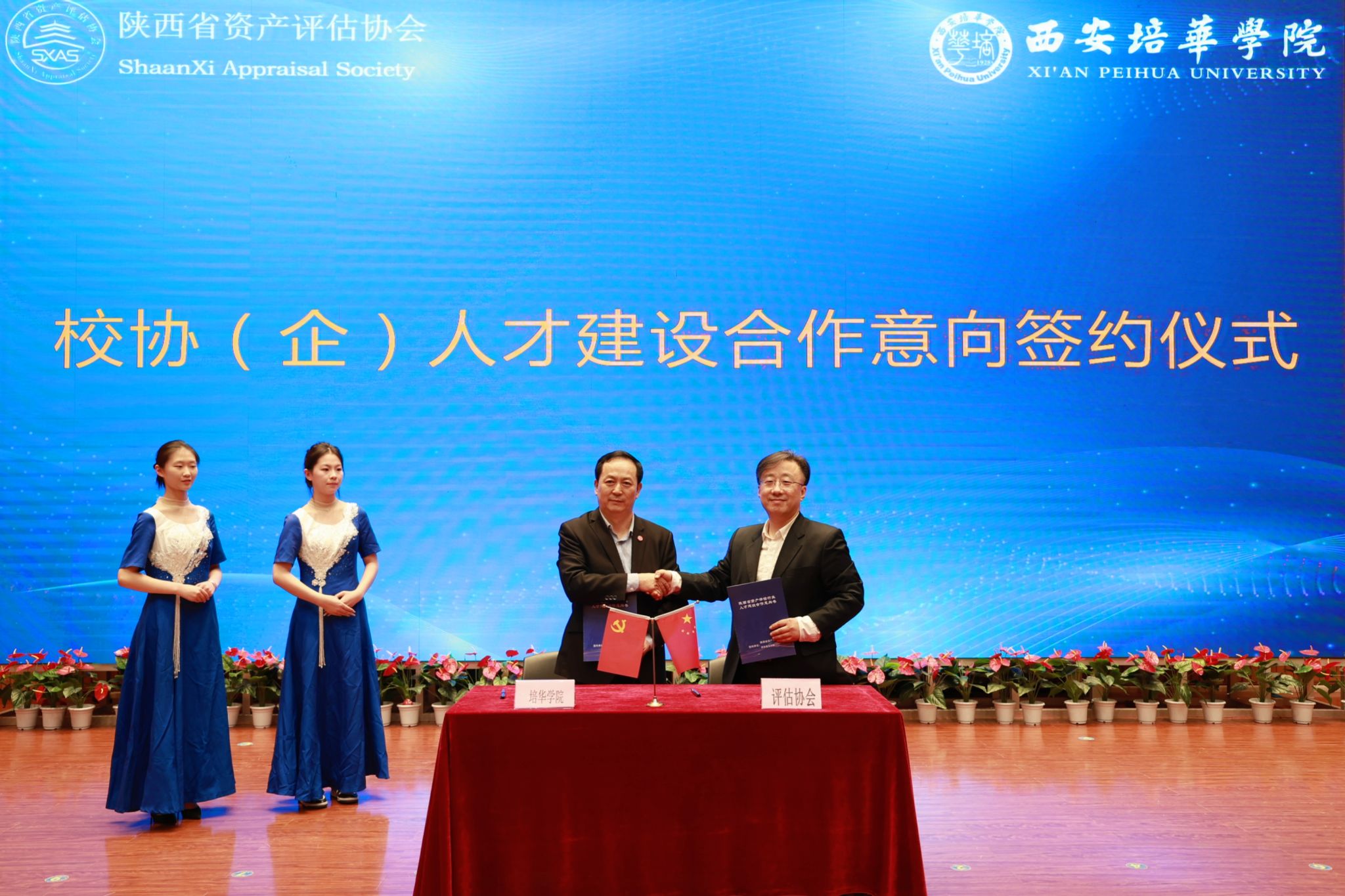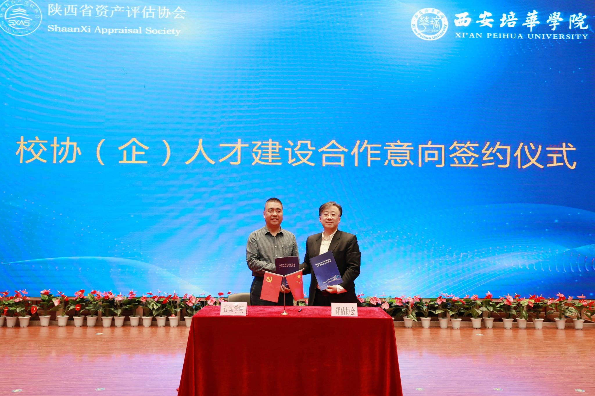 随后陕西省资产评估协会分别与西安培华学院、陕西财经大学行知学院、西京学院签订了人才建设合作意向书;西安培华学院与正衡、新兰特、天健兴业、中和、金达、卓信大华、同道、旭隆、信通、天任十家资产评估公司签订了资产评估新专业人才联培协议。