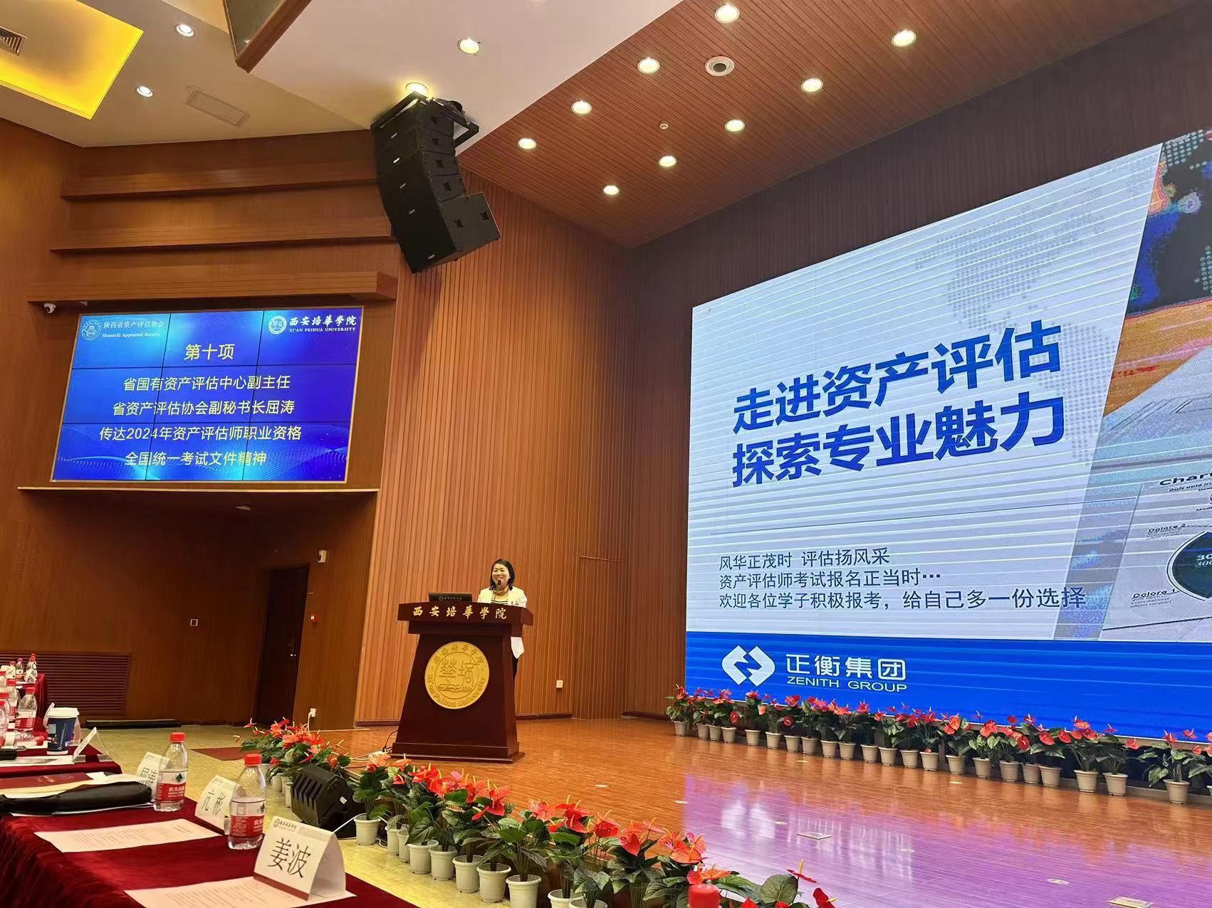 省资产评估协会副秘书长屈涛传达了2024年资产评估师职业资格全国统一考试文件精神。正衡房地产资产评估有限公司总经理吴莉、新兰特资产评估公司董事长李辉、西安信通资产评估有限责任公司总经理张宏英三位企业家分别以“走进资产评估,探索专业美丽”、“陕西省资产评估行业人才建设”和“中小评估机构高质量发展急需掌握新质生产力的专业人才”为主题进行了考试宣讲。西安培华学院2020届校友、中和资产评估有限公司陕西同盛分公司项目经理张露阳分享了考试经验。