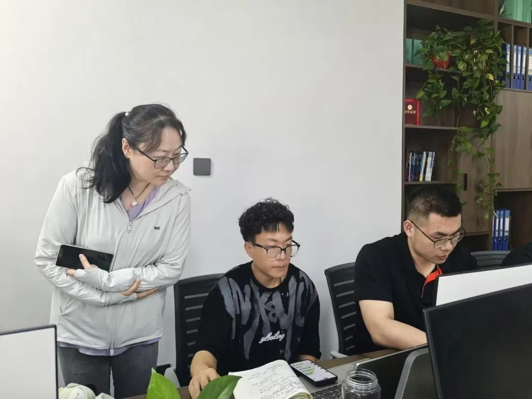 仁名扬(陕西)有限公司高文轩总经理对到访的老师们表示欢迎,随后带领江凤香、王芳、浮永梅、谷萍和张婉金等5位老师来到学生们工作环境进行参观,5位老师也分别与其指导学生进行沟通和交流,了解学生 在实习工作中的成效和困难,关心学生们对实习工作的适应程度,在交流中,多数学生表达了自己在工作中的成长和进步,同时也坦诚道明在工作中遇到的困难和障碍,老师们在了解到学生的实际情况后,还是很欣喜看到学生的成长。