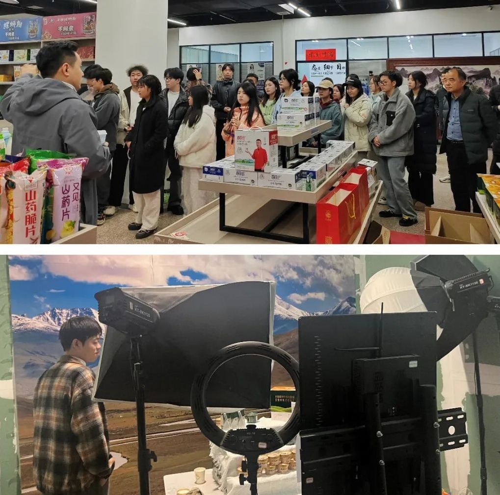 首先,翁总在一楼展厅对校企合作项目所涉及的核心产品进行了详细介绍,并现场征询学生们对新产品开发的意见和建议。同学们积极发言,从消费者视角出发,提出了许多具有建设性的想法。随后,同学们来到公司二层,参观了公司的短视频制作与直播运营区域。通过现场讲解与实地观察,学生们了解了企业在短视频与直播电商领域的最新运营模式。