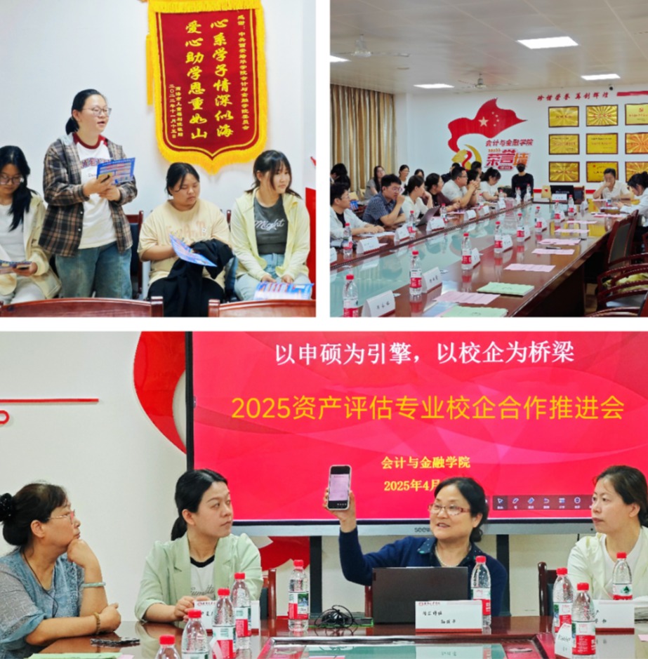 为深化产教融合、推动应用型人才培养创新,4月29日上午会计与金融学院管理系在明德楼2115会议室成功举办主题为“以申硕为引擎,以校企为桥梁”2025资产评估专业校企合作推进会系列活动。本次活动涵盖“企业家进课堂”“资产评估专业申硕助力行业发展座谈会”“访企拓岗促就业”三大板块,通过与11家资产评估公司专家经验分享、校企对话、岗位对接等形式,搭建起教学、科研与产业深度融合的桥梁,助力学生成长与行业高质量发展。