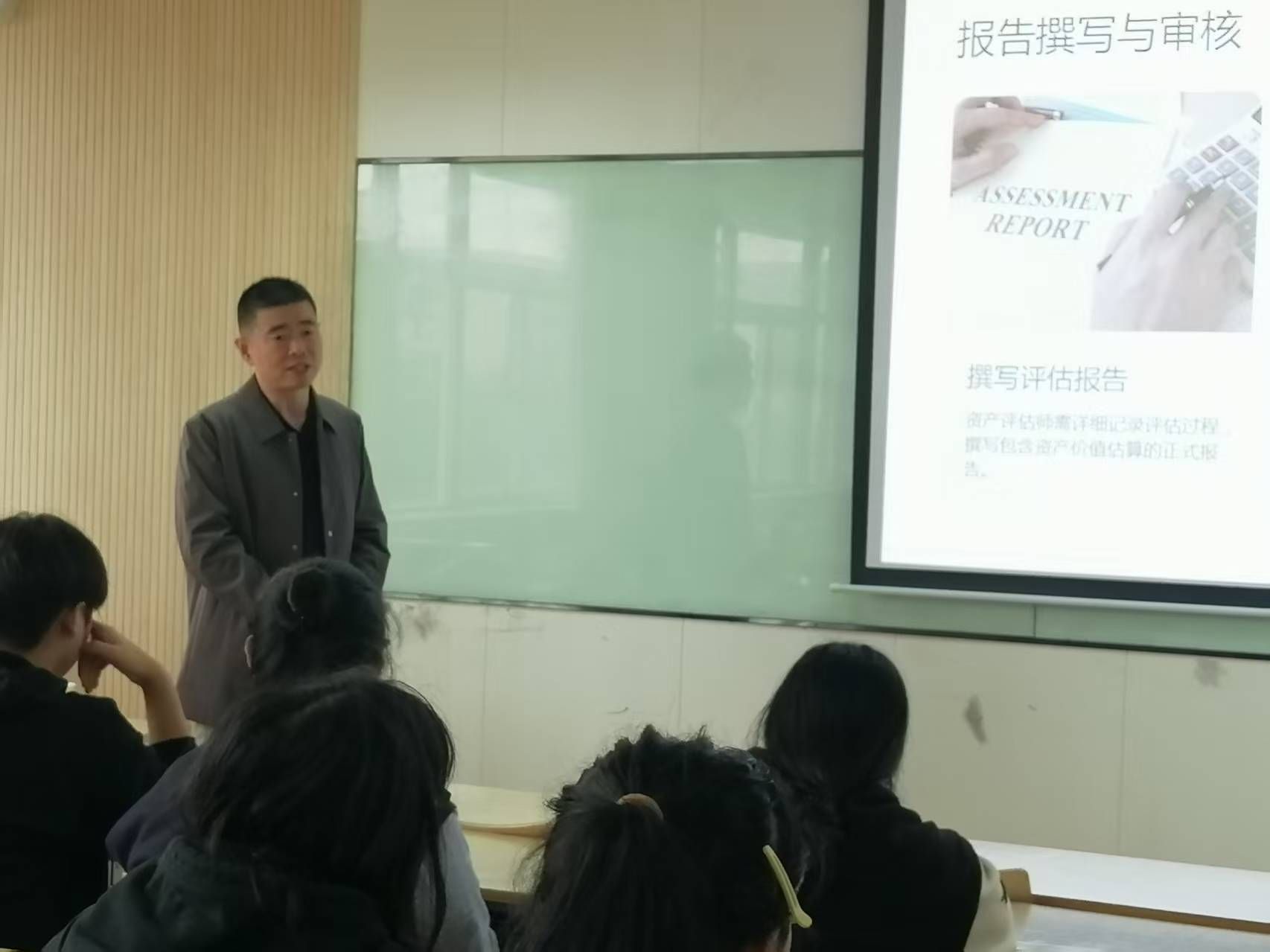 作为资产评估专业订单班的“企业共建导师”,撖大刚总经理以《洞察行业现状,把握发展机遇》为主题,结合数十年行业实战经验,精准对接订单班“岗课赛证”融合培养目标展开分享。他指出,当前资产评估行业正迎来高速发展期,数据资产评估、绿色资产评估等新兴领域人才缺口显著,而订单班培养的“懂技术+精专业+善沟通”复合型人才,正是企业急需的核心力量。同时,他还结合订单班课程设置,详解AI技术在资产清查、价值测算中的实际应用,让学子们直观感受“课堂所学”与“岗位所用”的紧密关联。