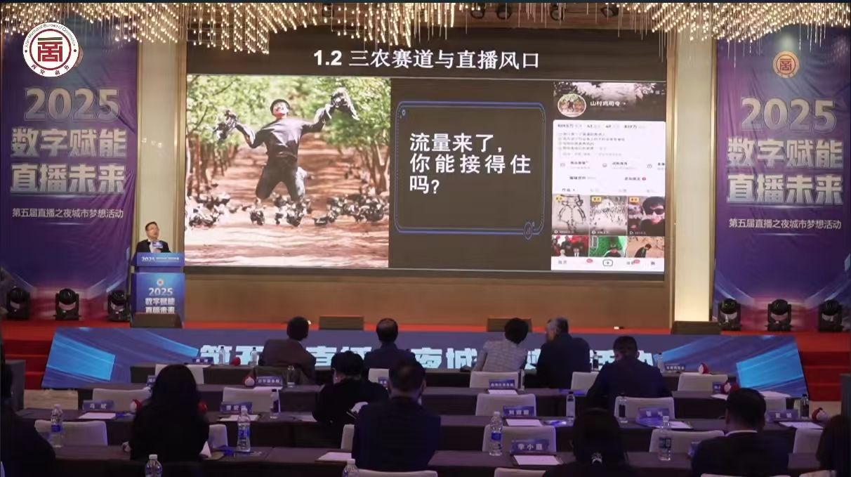 首先,师生们参加了活动开幕式,听取了开幕式上陕西新思路研究院院长董驰博士题为《直播3.0时代:从流量运营到生态共建》的主题演讲。作为大会行业专家发言人,董博士以抖音平台最新数据为切入点,系统阐释了直播行业的演进路径,特别强调了技术赋能与生态协同在直播下半场竞争中的核心作用。师生们纷纷表示,董博士的演讲为直播行业提供了极具前瞻性的视角,启发了同学们对AI技术与商业融合的思考。