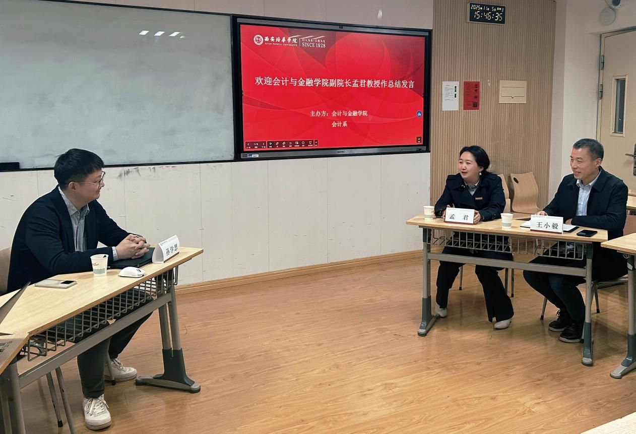 为进一步深化产教融合、校企合作,精准对接行业前沿需求,2025年11月5日下午14:30会计与金融学院2218室,西安培华学院会计与金融学院会计系举办“大数据背景下财会人才职业素养形成与企业合规之路”主题沙龙活动,会计与金融学院副院长孟君教授、天职国际会计师事务所作业中心负责人孙学思经理、会计系主任王小毅副教授,以及会计系全体教师出席沙龙活动。
