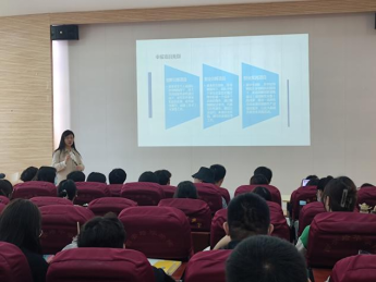 王艳教授通过讲解大创项目的由来、选题和类型、申报流程、展示项目案例和成果,为同学们全方位、多角度地诠释了不同类型的大学生创新创业训练项目,使同学们对申报创新创业项目申报有了更加清晰的认识。她重点阐述大创项目申报,一是要结合自身情况进行精准选题,包括综合考虑选题价值与研究前景,分析核心技术竞争力和市场化前景,可提高项目完成率;二是要组建一支能力全面的学生团队,充分发挥团队协作能力,可大大提高项目完成质量。她鼓励同学们结合专业知识、个人兴趣积极申报大创,以项目为平台扩展认知视野、锻炼实践能力、提升综合素养和培养家国情怀。