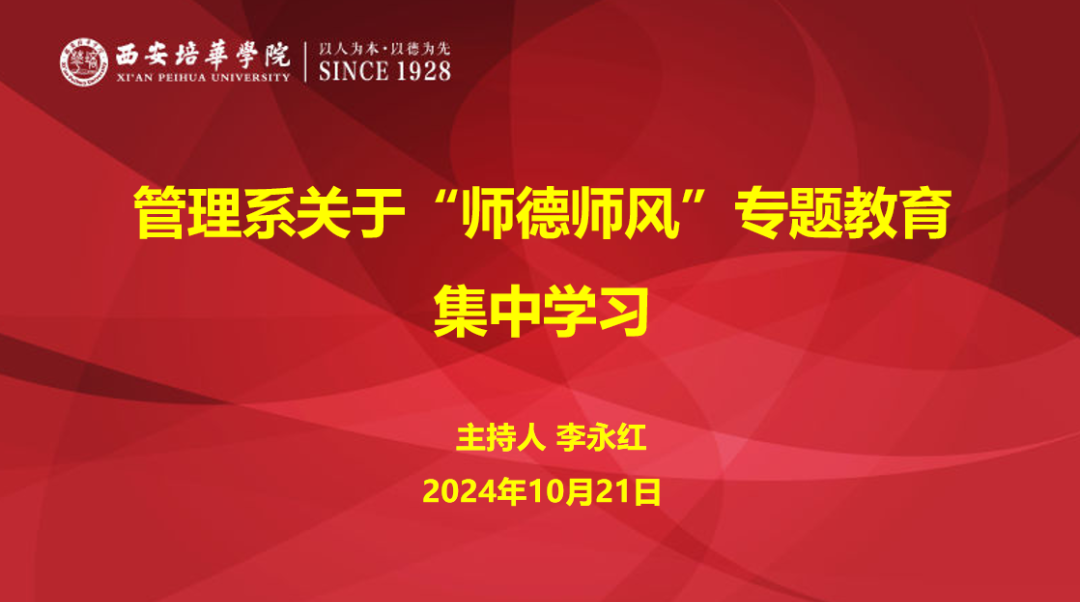 管理系副主任田琳带领全系教师深入学习了习近平总书记关于师德师风建设的重要论述。她引用了总书记在不同场合的讲话,包括致全国广大教师的慰问信、与北京师范大学师生代表座谈时的讲话,以及给“国培计划(2014)”北京师范大学贵州研修班参训教师的回信等,来强调教师的道德修养和专业精神对于教育事业的深远影响。田琳副主任还特别指出,教师们应该积极且及时地学习最新的政策性文件,以确保教育实践与国家的教育方针和政策保持一致。她强调,持续的专业发展和对教育政策的深刻理解是教师职业发展的关键。希望我系教师通过这次学习,不断提升自己的道德标准和专业能力,更好地服务于学生和社会。