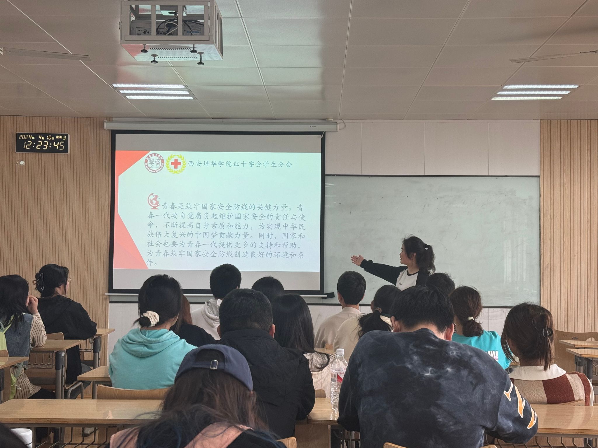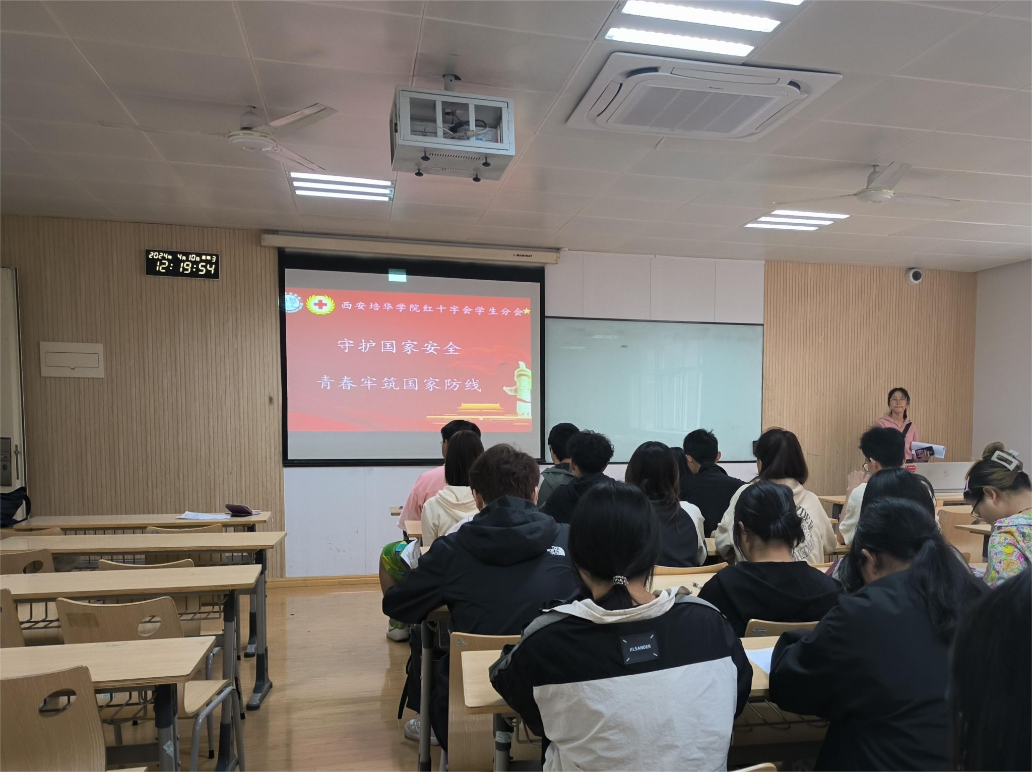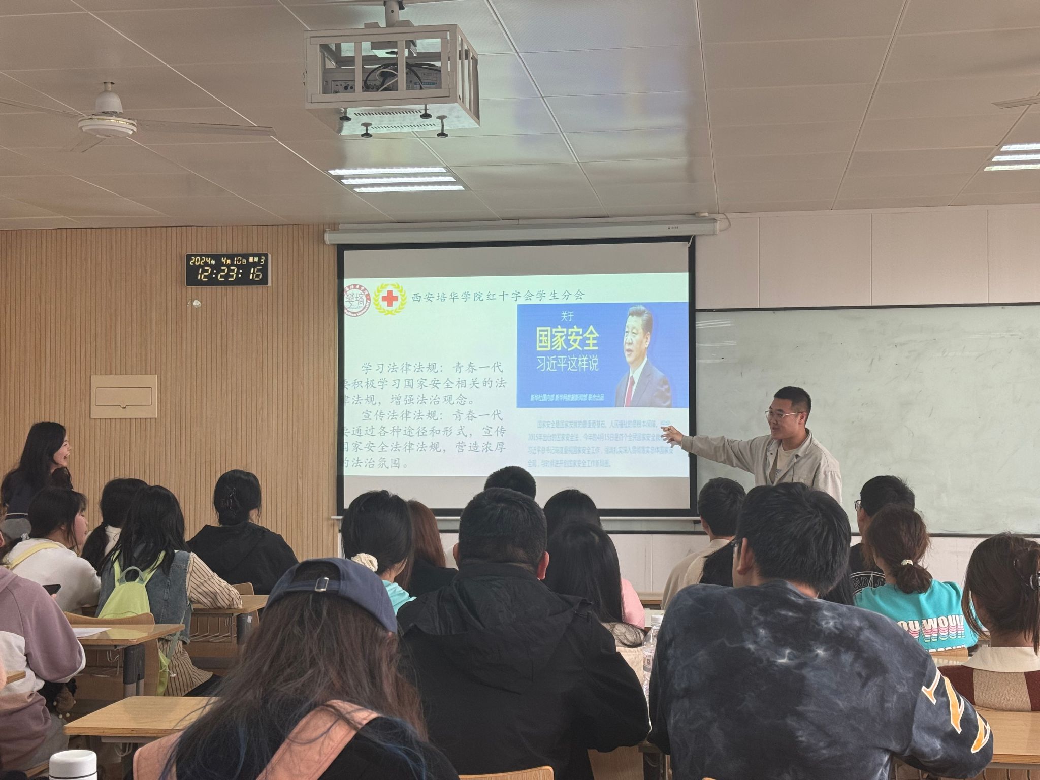 4月10日中午,西安培华学院红十字会学生分会于博远楼开展“守护国家安全,践行青春使命”国家安全教育宣传活动。
