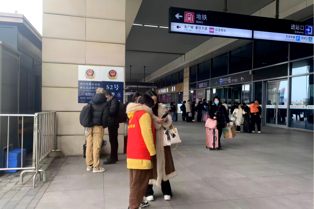 在春运返乡期间,培华青年志愿者在西安站、西安北站、城北客运站、城西客运站等地协助开展秩序维护、行李帮带、咨询引导、票务协助等志愿服务工作,为旅客提供“温馨、舒适、安全、便捷”的春运出行服务。