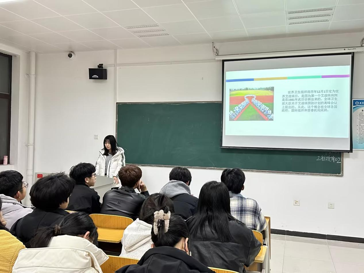 辅导员老师们通过ppt、视频等方式更加具象地让同学们了解艾滋病的治病原理、发病症状、传播途径、防治措施等,更是通过案例让学生更直观地了解艾滋病的危害和预防艾滋病的重要性。