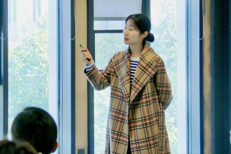 卫梓琪老师首先向大家详细介绍了抗日战争中初露锋芒的新舞蹈。如1933年由吴晓邦创作的舞蹈《傀儡》《小丑》《饥火》《大刀进行曲》《罂粟花》《游击队之歌》。随后卫老师分析了在抗日战争斗争时期波澜壮阔的“新舞蹈运动”。她讲到:新“舞蹈运动”是当代舞蹈家为了表现当代生活,塑造当代人物形象,根据表现舞蹈内容的需要,有选择地吸收、融合和运用古典舞、民间舞、现代舞的表现手段和表现方法,而形成的一种新的风格的舞蹈。“新舞蹈运动”中涌现出了一大批扎根人民生活的舞蹈工作者,这些工作者整理、编创了一大批剧有民族特色、反映民众生活的作品。最后,卫老师给大家分享了第七届“荷花奖”金奖舞蹈作品《南京·亮》,并且对该作品进行了深入解析。