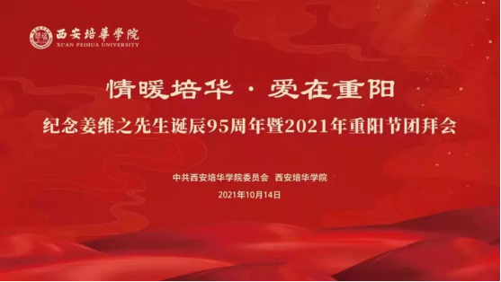 佳节重阳,敬老爱老。童年是一幅画,少年是一个梦,青年是一首诗,中年是一支散文,老年是一幕历史。重阳节,一个尊老敬老的节日,它既是传承民俗文化的代表,又是华夏传统美德的象征,同时也是西安培华女大学创始人姜维之先生诞辰95周年的日子。西安培华学院诚邀我校60岁以上的骨干教职工以及关心和支持培华发展的各级领导相聚在我校长安校区沁园餐厅三楼宴会厅,共同参加“纪念姜维之先生诞辰95周年暨2021年重阳节团拜会。”我校艺术教育中心特为此次活动带来了精彩的节目。