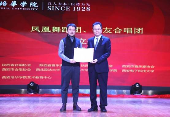 2020年11月25日14:30,西安培华学院“凤凰”舞蹈团、“恒友”合唱团成立仪式在大学生活动中心如期举行。