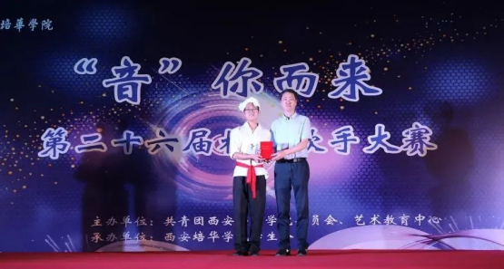 在中国共产主义青年团成立100周年之际,为弘扬“五四”精神,传递积极乐观的正能量,丰富我校师生的校园文化生活,2022年6月1日晚19:00,由我校艺术教育中心联合校团委主办的“第十六届校园歌手大赛”在体育场如期举行。西安培华学院理事长姜波博士、学生服务中心主任蔡亮及各学院学生代表五千余人观看了比赛。