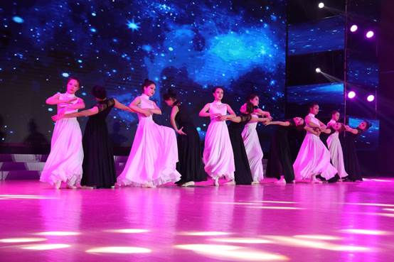 来自大学生艺术团民舞队的开场舞《迈向百年》拉开了表演的序幕,随后,建筑与艺术设计学院学生献上独唱《光年之外》,人文与国际教育学院带来了歌伴舞《读唐诗》,拉丁舞《shy》将光影和热情的舞姿相融合。