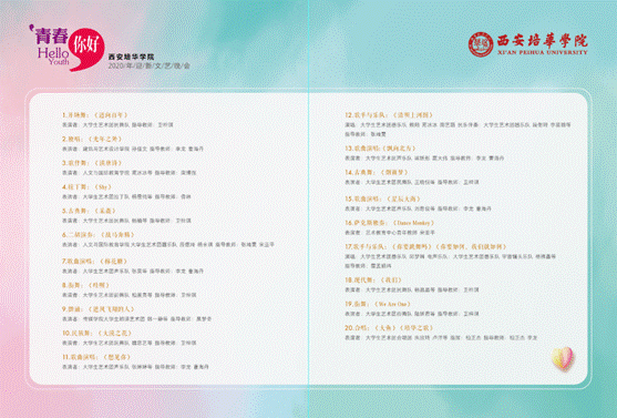 古典舞《采薇》将古香古色的歌曲和曼妙的身姿相结合,大学生艺术团器乐队带来了激情澎湃的二胡演奏《战马奔腾》, 声乐队演唱了旋律优美温柔的《棉花糖》,街舞《哇喔》节奏动感,现场的掌声和欢呼声此起彼伏。朗诵艺术团的诗朗诵节目《逆风飞翔的人》将大家的思绪牵回那段我们风雨同舟齐心抗疫的日子。舞蹈《大漠之花》向我们展示了少数民族舞步的异域风情和对祖国的热爱之情,一首《想见你》,道出了我们在培华的缘聚缘起。