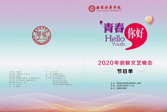 10月25日,西安培华学院在长安校区体育馆举办“青春,你好”2020年迎新文艺晚会。培华学院理事长姜波、校长李映方、校党委书记罗新远,校党委副书记、副校长姚文静,监事会主席、党委副书记、纪委书记、工会主席徐国富,二级院部负责人、辅导员及2020级全体新生参加了此次晚会。