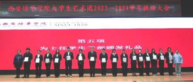 大学生艺术团在2022—2023年度取得了优异的成绩,而这些成就的背后都离不开2022届学生干部的认真负责、辛勤努力。在此,大学生艺术团指导教师为上任学生干部颁发礼品,感谢他们为大艺团做出的贡献,也祝愿他们在未来的道路上披荆斩棘、一帆风顺。