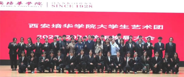 最后,全体参会人员合影留念,大学生艺术团2023-2024年度换届大会到此落下帷幕。冬日启新程,换届共成长,让我们一起期待培华大艺团更加美好的明天!