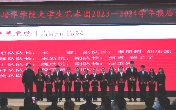 刘荣弟教授表达出对离任学生干部的感谢,也对新一届学生干部的表示祝贺。随后回顾了我校2023年丰富多彩的校园文化活动,通报了我校参与各类艺术比赛的获奖情况,肯定了大艺团各演出团体为我校九十五周年校庆文艺晚会等演出活动做出的重大贡献。大艺团始终不忘初心,为培华学子提供施展才华的天地。新鲜血液的注入使培华大艺团的艺术氛围更加浓厚,活力更加充足,艺术形式更加丰富多彩。由此,同学们在大艺团丰富自己的大学生活的同时也为大艺团取得更优异的成绩,愿大艺团全体师生在未来也能相互进步,一起朝着我们共同热爱的理想信念而拼搏奋斗。