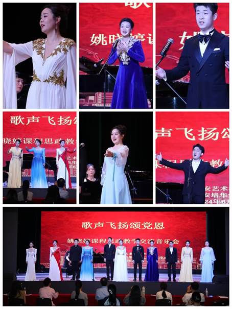 为迎接党的生日,深入学习贯彻习近平总书记对学校思政课建设作出的重要指示精神,开创学校思政教育新局面,培养让党放心、爱国奉献、担当民族复兴重任的时代新人。落实教育部关于全面实施学校美育浸润行动精神,让美育浸润校园、浸润师生。2024年6月27日晚,“歌声飞扬颂党恩”——姚晓婷课程思政教学交流音乐会在我校大学生活动中心顺利举行。我校艺术教育中心全体教师,各二级学院师生代表参与观看了演出。