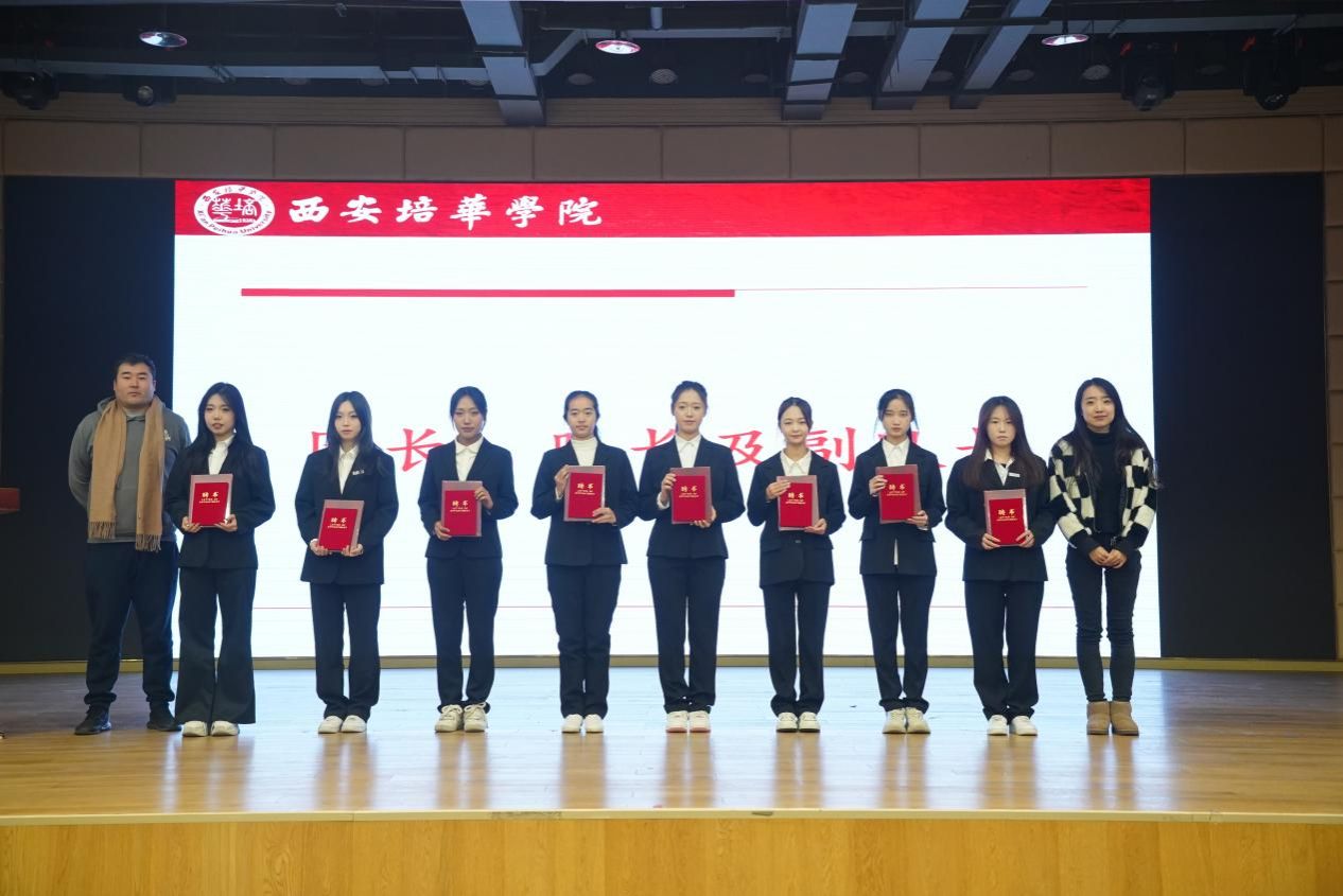 大会第四项:领导及指导老师为新任学生干部颁发聘书及礼品。培华青年风华正茂,热情高涨,是他们的热爱所在;端庄郑重,铿锵有力,是他们的职责所在。