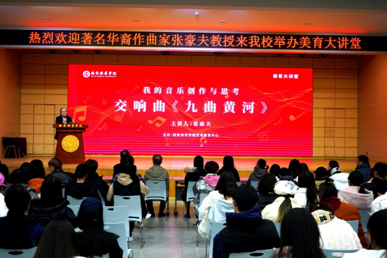 张豪夫教授更以自身经历劝勉学子,音乐精进需扩知识视野,学他山之石,于生活敏锐洞察、深掘文化富矿,方能育创新之花、铸艺术华章。此次讲座为师生呈上音乐文化盛宴,借《九曲黄河》创作探秘,助师生体悟音乐多元魅力,扎根文化厚土,增强文化自信,于艺术探索征途勇毅前行、传承创新,为校园文化繁荣注入强劲动力。