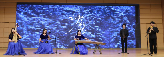 在热烈的掌声中演出帷幕正式拉开,一场精心编排的视听盛宴展现在观众面前,节目内容精彩纷呈:街舞《Run the world》以动感活力点燃现场;女声独唱《想自由》、男声二重唱《说了再见》及女声五重唱《日落大道》、女声三重唱《骁》展现了声乐教学的扎实成果;民乐小合奏《诀别书》与古筝合奏《盛世国乐》传递出传统音乐的深厚韵味;长笛独奏《渔舟唱晚》、《大鱼》以及钢琴独奏《C大调小奏鸣曲》则彰显了器乐演奏的娴熟技巧。学子们在璀璨的舞台上尽情绽放才华与热情,每一个节目都凝结着指导教师的悉心教导与艺术团成员的勤学苦练,生动体现了本学期教学管理的严谨高效与艺术实践的丰硕成果。