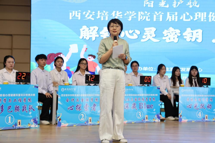 为深化心理健康教育,培育学生积极心理品质,西安培华学院首届心理健康科普知识竞赛决赛在2025年4月18日于恒友楼多功能厅成功举行。本次比赛由学生潜能发展中心主办,医学院承办,来自不同学院的8支队伍展示他们的魅力,共同开启一场智慧与协作的盛宴。