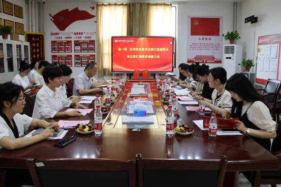 会议伊始,医学院党委书记兼行政副院长史立军对我院“姜维之班”创建工作从创建班级基本情况、工作开展情况、存在问题及改进方向四个方面进行了详细汇报。他指出我院秉承“精诚为医,至真至善”的院训,以立德树人为根本,以“姜维之”老校长教育思想为引领,以服务学生成长成才为中心,以“姜维之班”创建促院风、教风建设,夯实创建实效,构建优良学风,围绕十大育人体系,实现“三全育人”目标,更好地做好我院“姜维之班”创建工作。