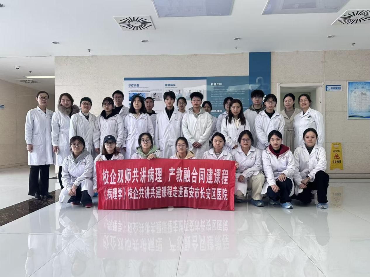为深化产教融合,强化学生实践能力,近日,医学院基础医学系病理学教研团队组织2024级护理学专业英才班本科生,前往西安市长安区医院病理科开展课内实践活动。《病理学》为我校与西安市长安区医院病理科校企共享共建课程,此次活动是学校“校企合作”人才培养项目的重要环节,旨在促进理论教学与临床一线的深度融合。