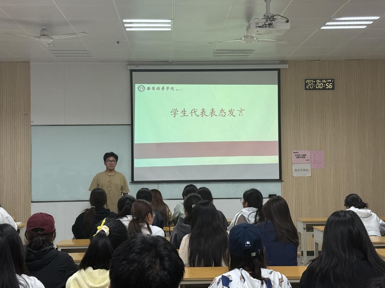 同时,各班选取学生代表上台表态发言,分享对“姜维之班”创建的思考与期待,传递“争做社会主义核心价值观坚定信仰者、积极传播者、模范践行者”的青春决心,让创建“姜维之班”的理念深入每一位医学青年心中。
