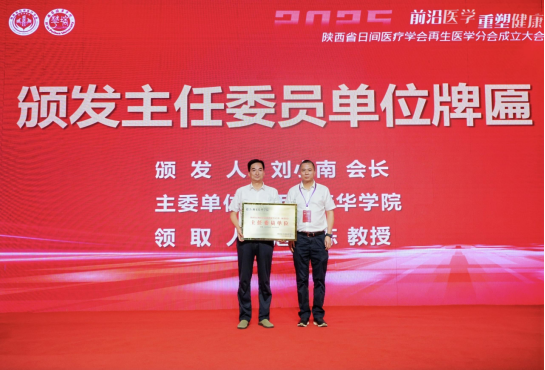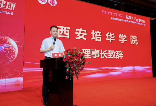 在备受瞩目的分会成立环节,姜波理事长与与会嘉宾共同见证了陕西省日间医疗学会再生医学分会的成立。他代表培华学院对分会的成立表示热烈祝贺,并积极参与了相关仪式活动。姜波理事长强调,再生医学是未来医学发展的重要方向,蕴含着巨大的潜力与机遇。他表示,西安培华学院及医学院将以此次盛会为契机,进一步深化“校医协同、产学研融合”的发展战略。