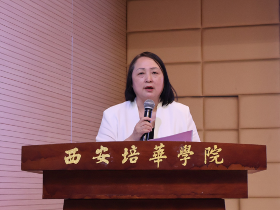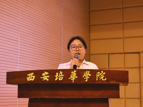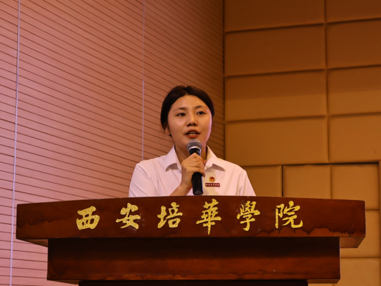 大会第二项医学院党委副书记何丽宣读《关于表彰西安培华学院医学院团属学生组织干部的决定》