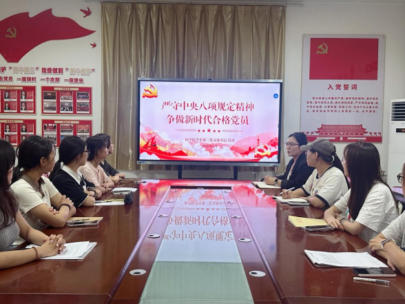 为深入贯彻落实中央八项规定精神,进一步加强党员作风建设,筑牢思想防线,2025年5月12日,医学院学生第二党支部在至善楼8330党员活动室开展“严守中央八项规定精神,争做新时代合格党员”专题党课学习活动。本次活动由党支部书记冯贝同志主讲,支部全体党员参加学习。