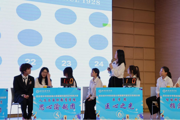 为深化心理健康教育,培育学生积极心理品质,西安培华学院首届心理健康科普知识竞赛决赛在2025年4月18日于恒友楼多功能厅成功举行。本次比赛由学生潜能发展中心主办,医学院承办,来自不同学院的8支队伍展示他们的魅力,共同开启一场智慧与协作的盛宴。