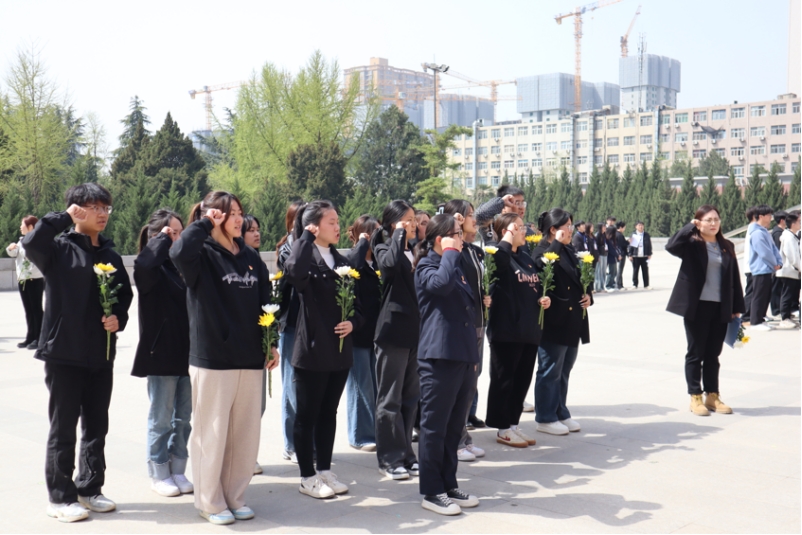 上午10时,祭扫活动在庄严肃穆的氛围中开始。全体师生在革命烈士纪念碑前整齐列队,党员代表向革命先烈敬献鲜花,随后,学生代表依次上前,将手中的鲜花轻轻摆放在纪念碑前,朵朵鲜花寄托着对英烈的无限哀思。在肃穆的氛围中,全体人员静默肃立,向为民族独立、人民解放和国家富强英勇牺牲的革命先烈默哀致敬。