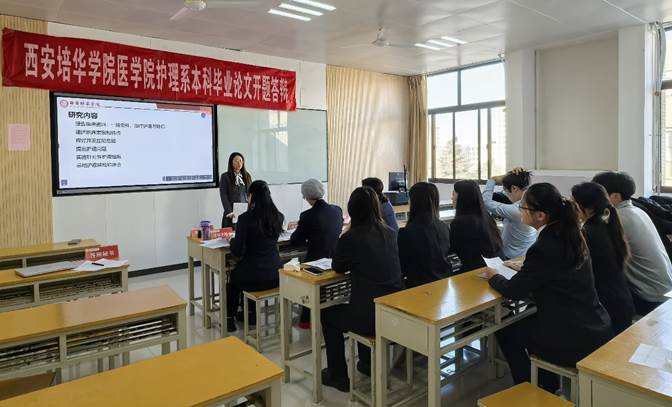 在护理学专业的开题答辩中,护理系共抽取了72名学生分批进行了开题答辩。答辩过程中,每位学生需就选题背景、研究目标与意义、研究内容、创新点、研究方法、进度安排及参考文献等关键要点进行不少于10分钟的陈述。答辩组专家随后针对论文框架结构、写作思路及研究依据等方面进行提问,并给出相应修改建议,确保学生能够在答辩中及时发现并解决论文写作中的问题。