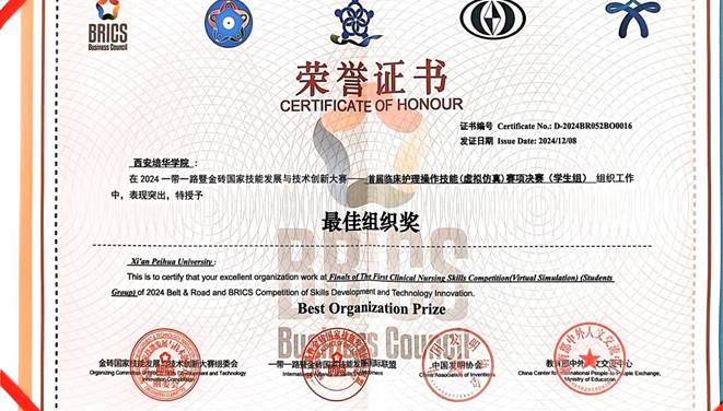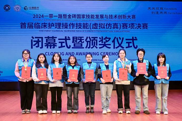 2024“一带一路”暨金砖国家技能发展与技术创新大赛——首届临床护理操作技能(虚拟仿真)赛项决赛于12月在上海圆满落幕。我校学子在此次大赛中凭借扎实的专业技能和出色的团队协作精神,荣获佳绩。经过激烈角逐,李婷同学荣获一等奖(金牌),孙金玉同学荣获三等奖(铜牌),李嘉欣等五位参赛选手荣获优秀奖,张丽媛教师荣获“优秀指导教师”称号,我校也在此次大赛中荣获学生组“最佳组织奖”。