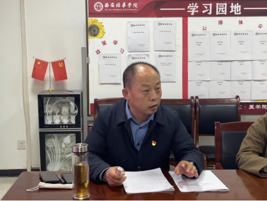 随后,史立军书记结合医学院的实际情况,通过生动的案例和详实的数据,深入剖析了党的二十届三中全会精神对医学领域的影响,分析了当前医学领域面临的新挑战和新机遇。他指出,作为新时代的医学生要紧跟时代步伐,具备创新精神和实践能力,不断提升自身综合素质,以适应新时代的发展需求。作为一名即将入党的发展对象,要勇于担当深刻领会全会精神,将其贯彻落实到实际学习和工作中去并鼓励大家积极投身医学事业,为实现健康中国战略贡献自己的力量。