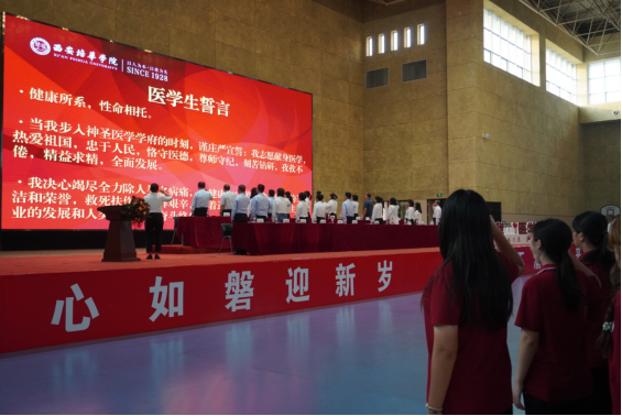 典礼最后,在同学们坚定而有力的声音下,充满了对未来职业的憧憬和对医学事业的敬畏。同时心中种下一颗为人类健康事业奋斗终生的种子。