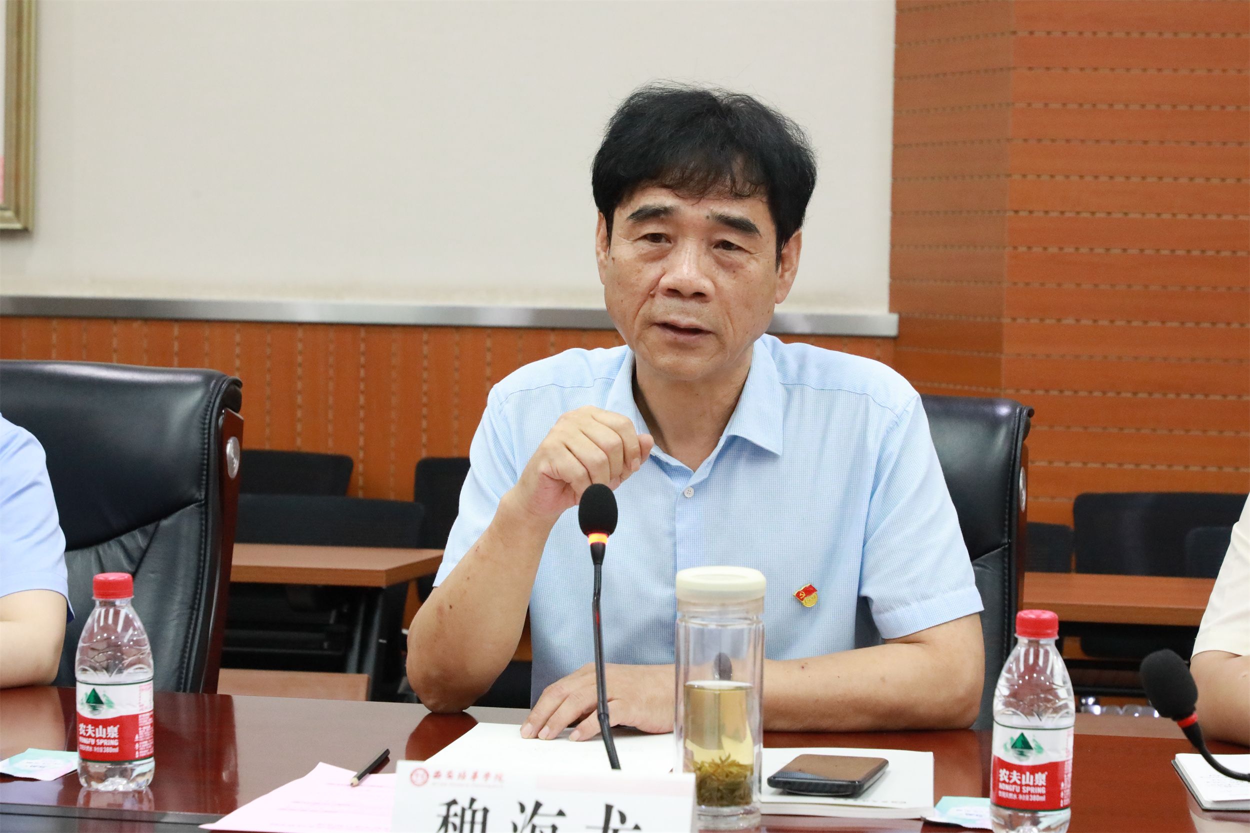 8月27日上午,陕西省结核病防治院(陕西省第五人民医院)魏海龙院长一行莅临西安培华学院考察交流。理事长姜波、常务副校长胡俊生、校长助理秦海锋以及校机关部门领导、医学院领导参加了交流会。