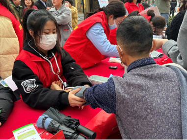 活动开始后,为了避免居民们“有病而不知”的情况,志愿者们对他们进行了问诊,从而告诉他们自身出现的健康问题。同样志愿者们也利用血压计为居民们测量准确的血压值,并告诉他们是低血压还是高血压最后给予他们合理的建议。